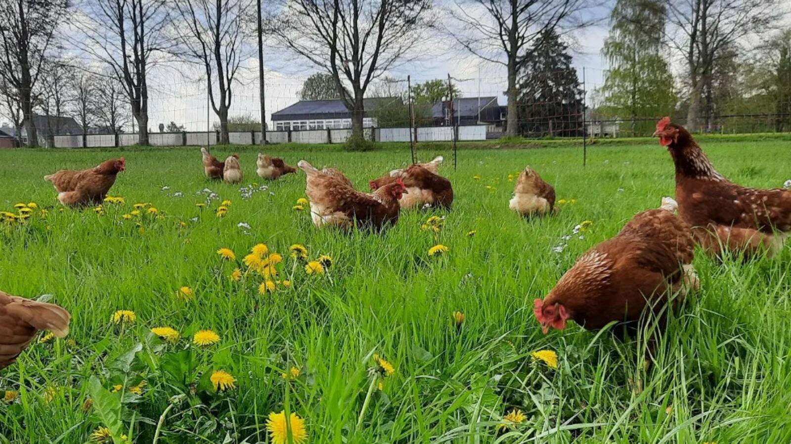Aus diesem Grund fahren wir mit unseren Mobilen regelmäßig ein Stück weiter auf der Wiese und zäunen einen neuen grünen Auslauf für unsere Hennen ein. In der Zwischenzeit kann sich der Rest der Wiese wieder regenerieren.